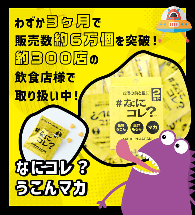 「発酵秋ウコン」に含まれるクルクミンは、発酵によって分子が小さくなり、吸収率がアップ。お酒のお供や翌日の元気維持にぴったりです。